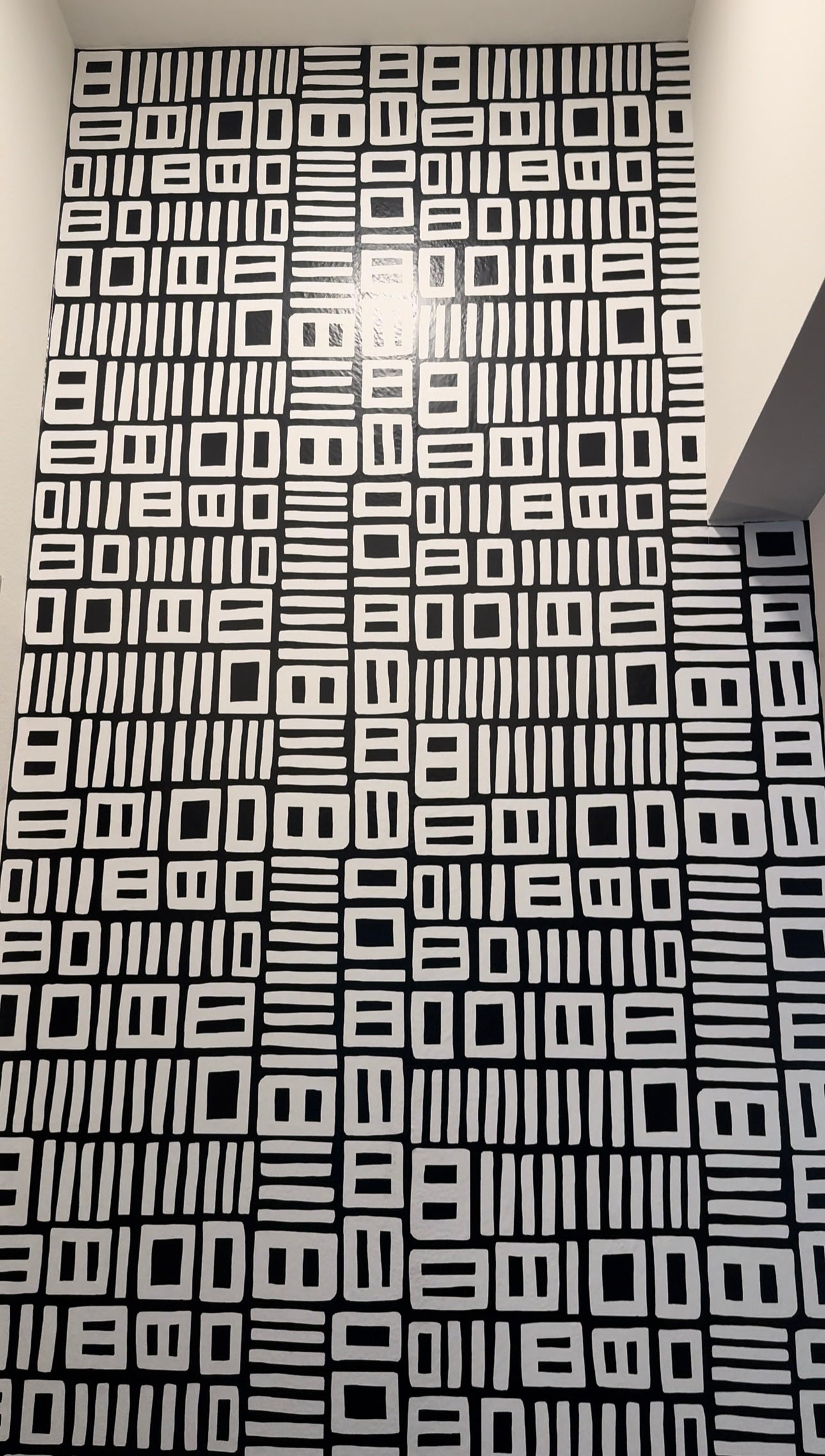 This thoughtful design approach demonstrates how strategic use of patterns and colors can dramatically alter the perception of a space. By incorporating these geometric elements, the hallway now serves as a seamless transition between rooms, enhancing the overall flow and aesthetic appeal of the home. The client's positive response to this transformation highlights the power of innovative interior design in elevating everyday living spaces.
