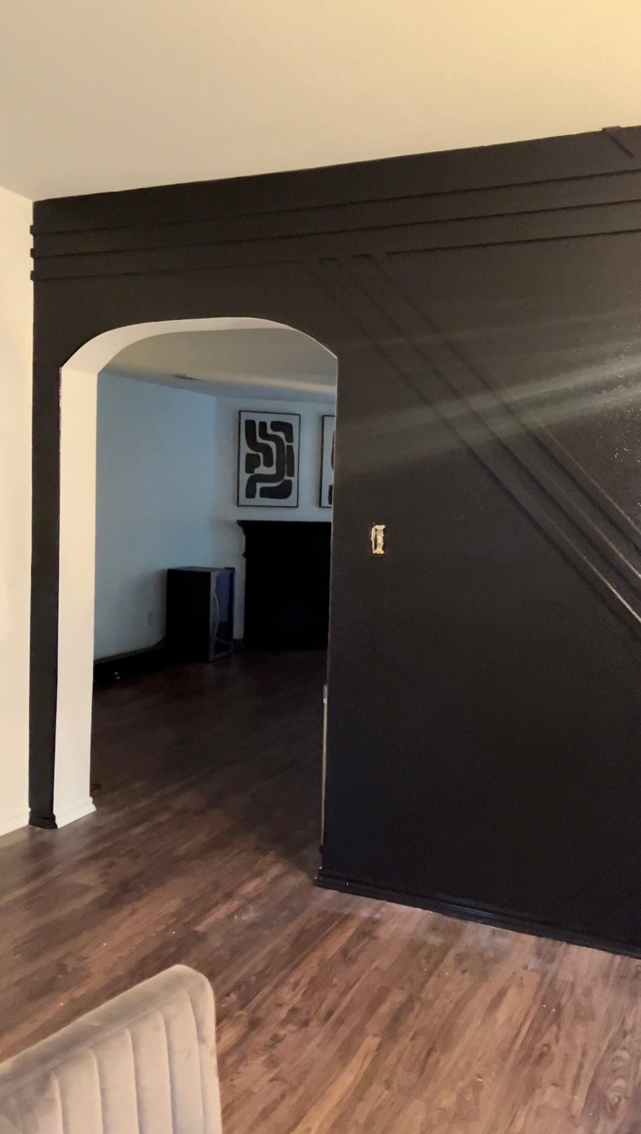 By incorporating this bold design choice, we've transformed an ordinary living room into a captivating space that tells a story. The semi-gloss finish not only adds a touch of elegance but also makes the wall easier to clean and maintain, combining practicality with style. As visitors and residents alike step into the home, they're greeted by this thoughtfully crafted element, which serves as a conversation starter and a reflection of the homeowner's unique taste.