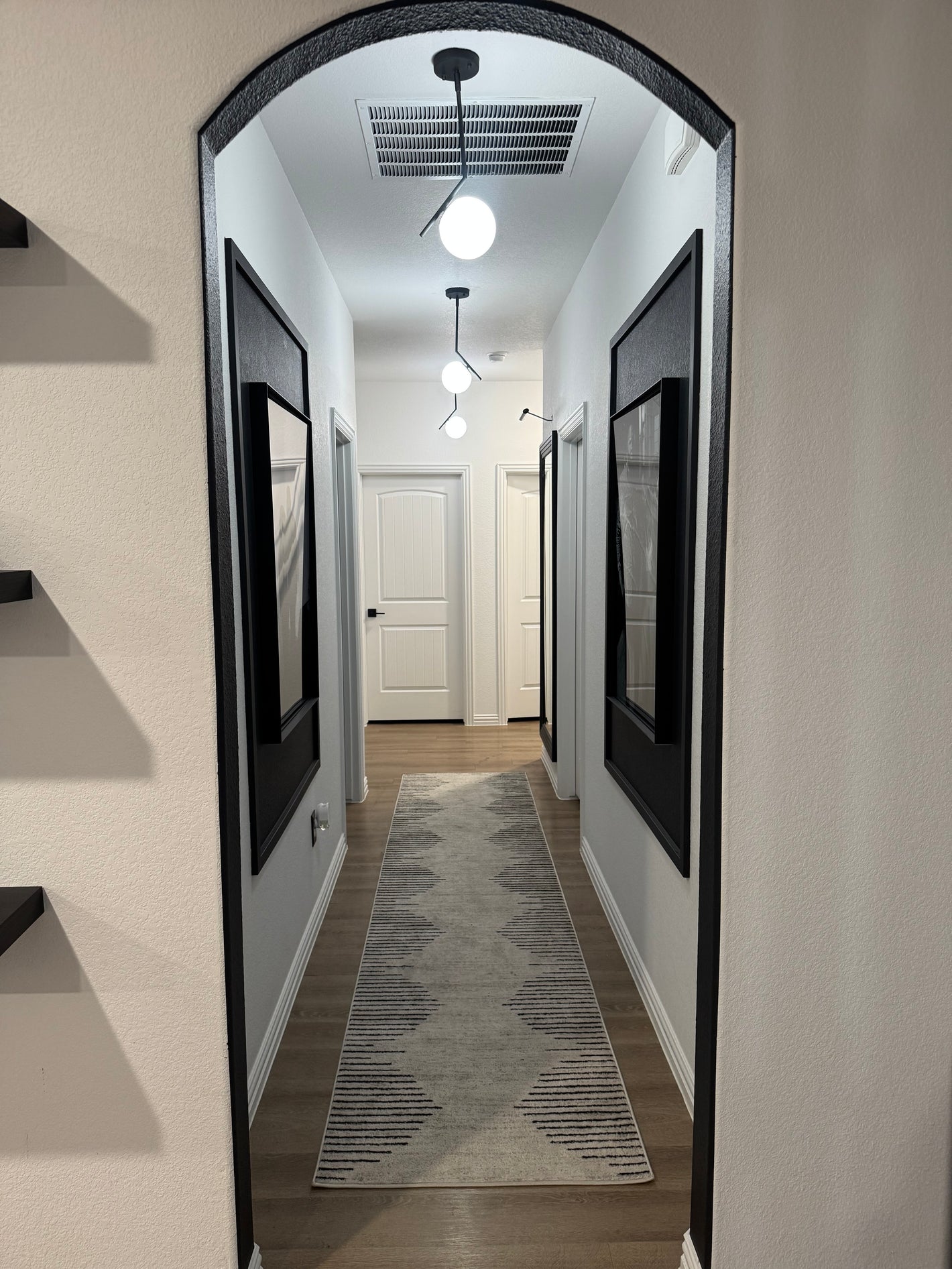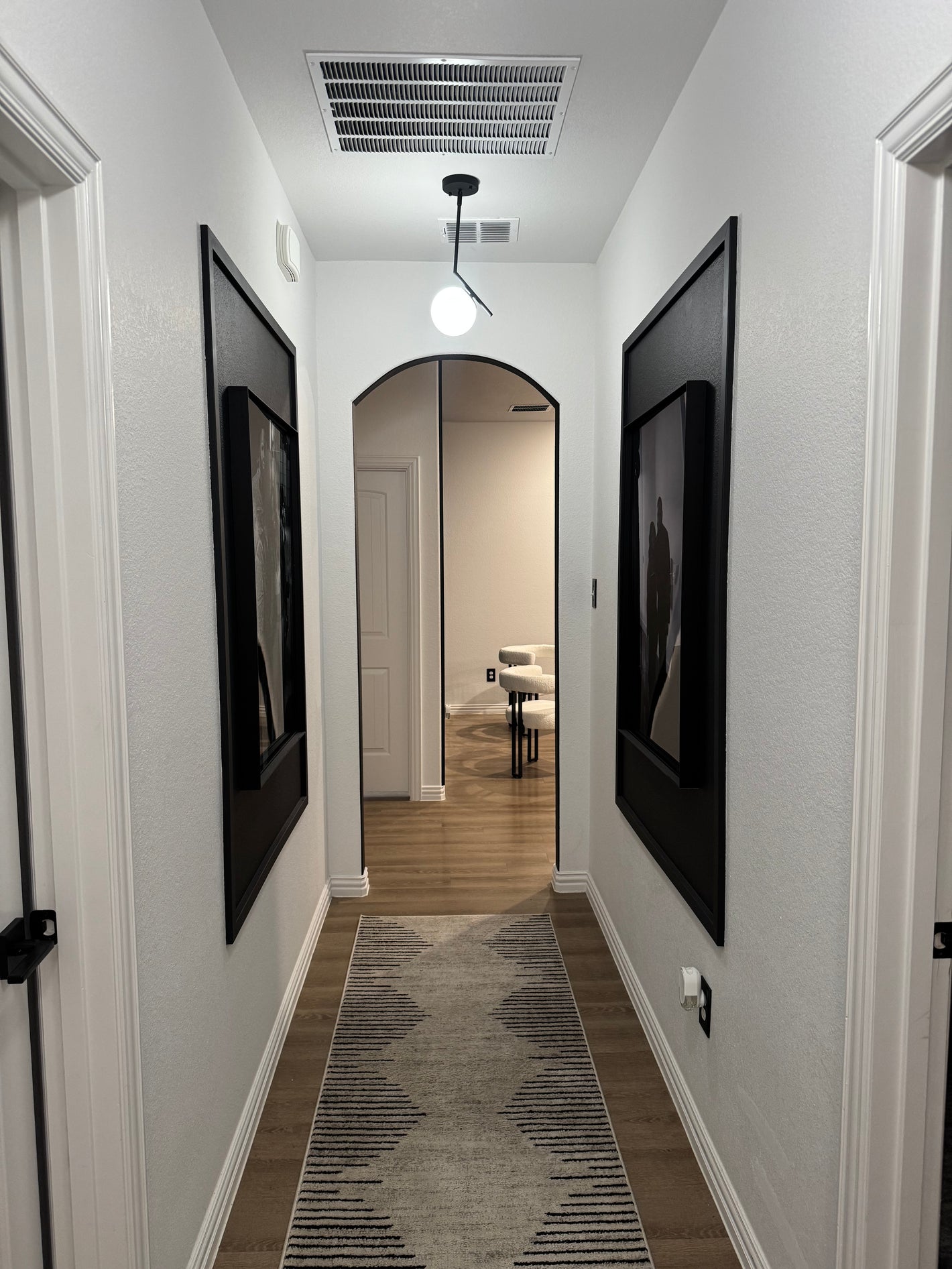 In addressing the design challenges of this client's long and narrow hallway, DMAID took a thoughtful and restrained approach. Rather than overwhelming the space with excessive wall designs, we chose to enhance the existing metal-framed pictures by adding a subtle bordering effect. This technique not only drew attention to the artwork but also created a cohesive visual flow throughout the corridor.