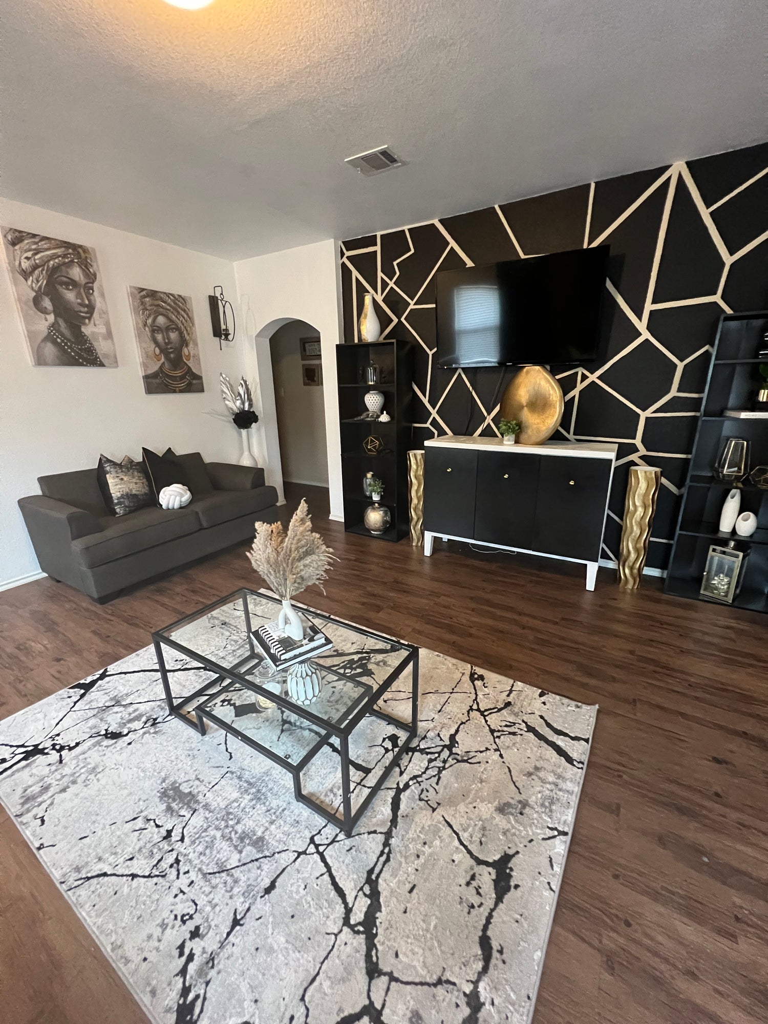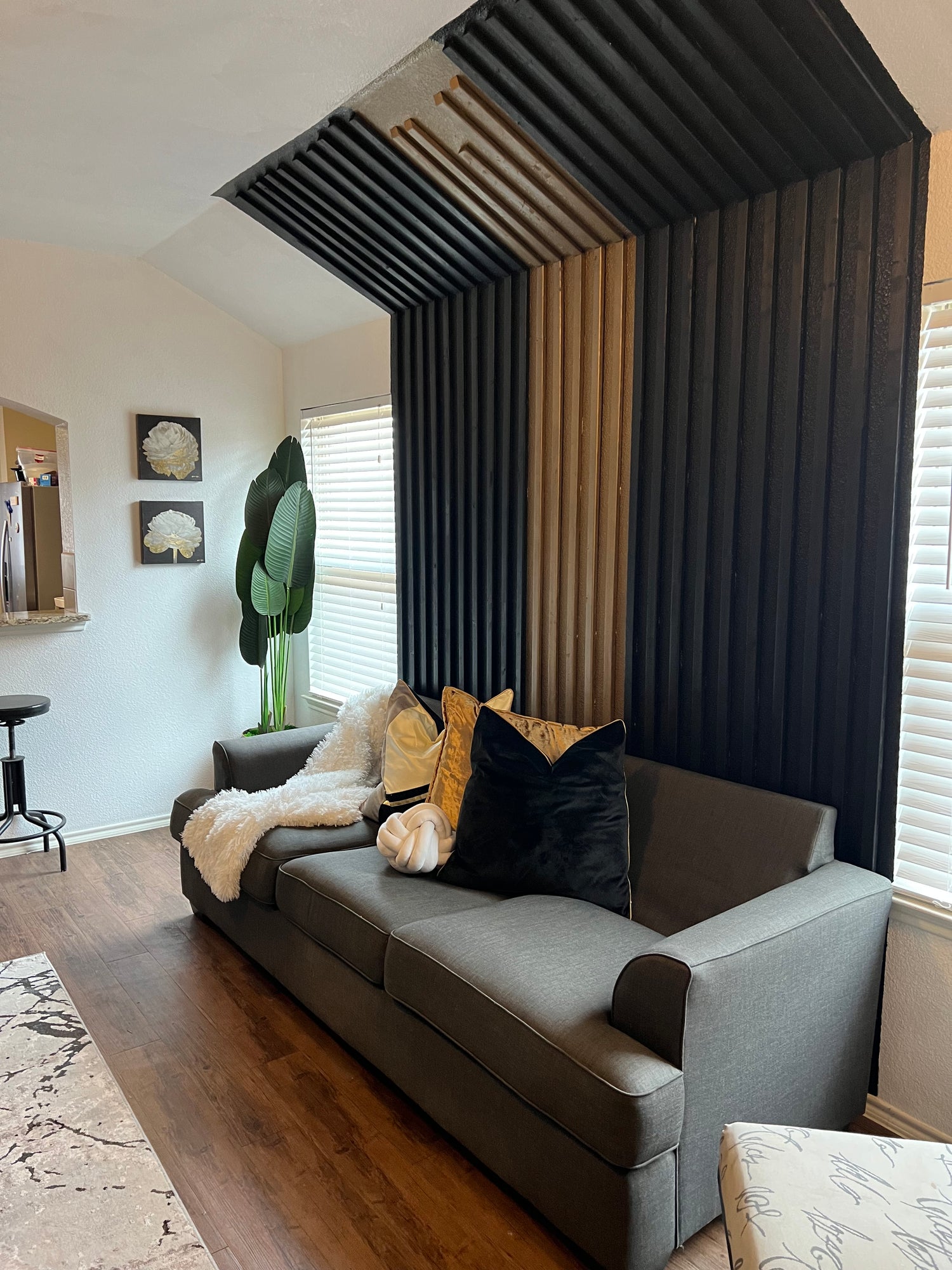 DM Aesthetics Interiors & Decor played with black and white textures and patterns that came together perfectly in this modern living room project. These textures and patterns have become some of our favorite foundations to work with; Layering these textures throughout a project adds personality and warmth.