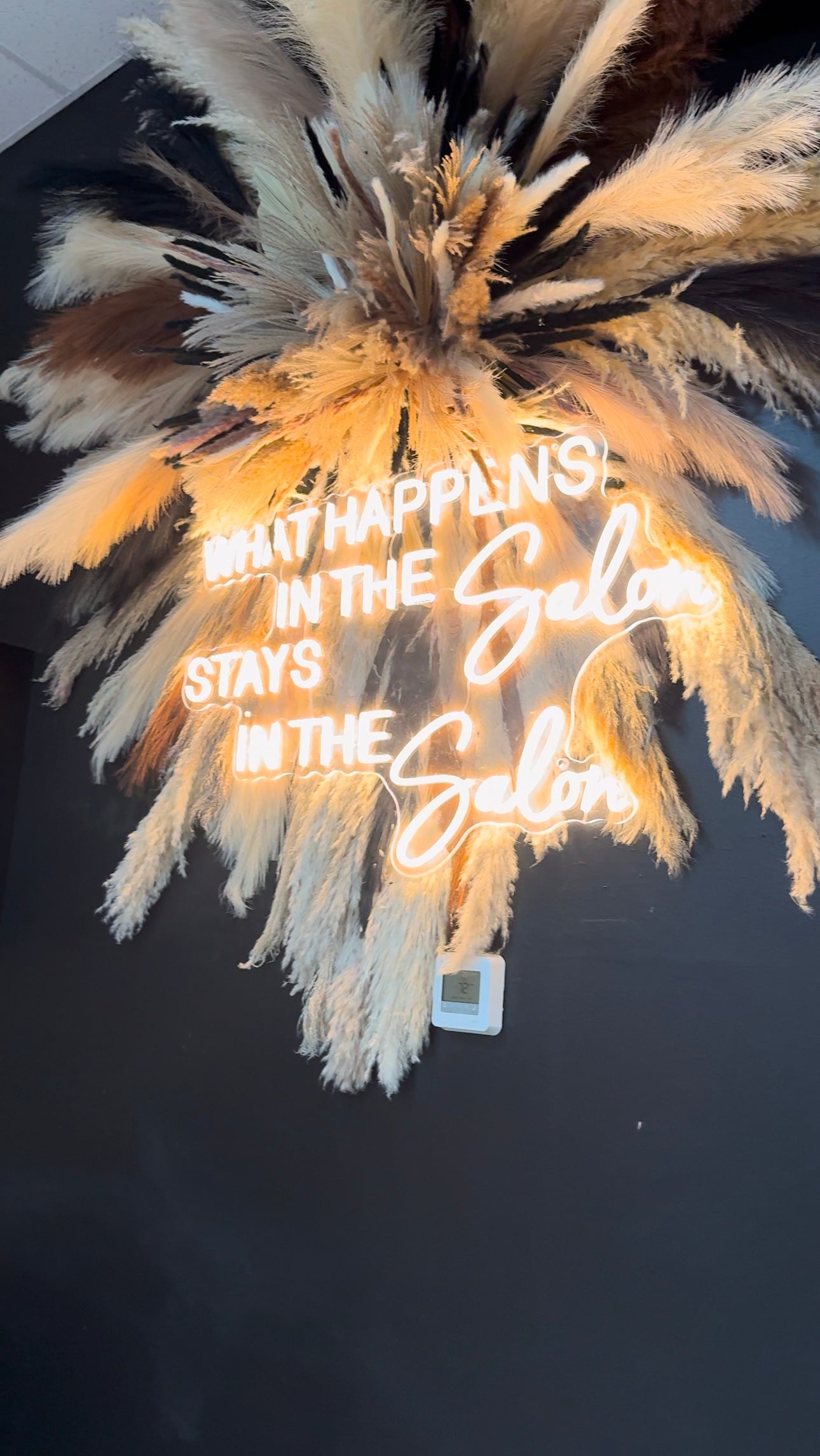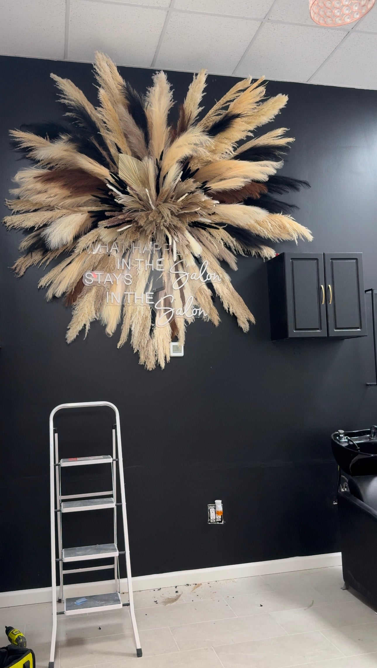The installation seamlessly blends natural elements with sophisticated design, transforming the salon space into a haven of beauty and elegance. The textural richness of the pampas grass adds depth and warmth to the interior, while its neutral tones provide a versatile backdrop that complements various color schemes and decor styles. This bold design choice not only meets but exceeds the client's expectations, showcasing the ability of DM Aesthetics Interiors & Decor to bring even the most ambitious visions to life. The pampas wall serves as a focal point, creating a memorable experience for salon patrons and setting the establishment apart in the competitive beauty industry.