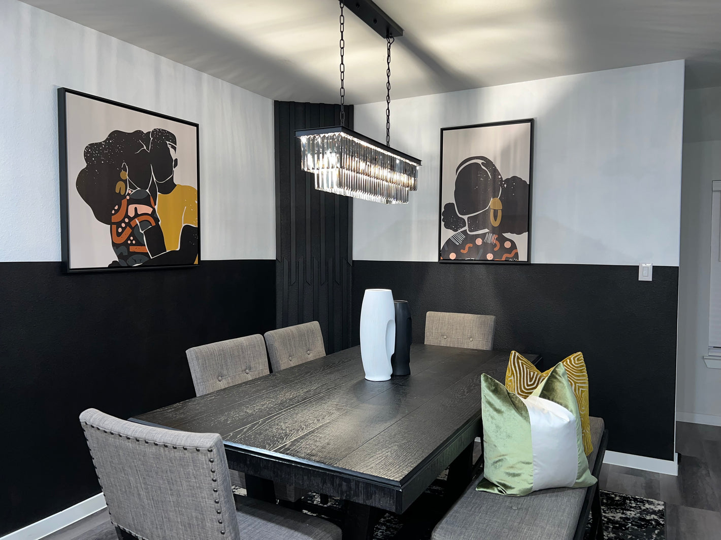 Love Is In The Air"Black Love" adds an element of sophistication and elegance to the dining room, enhancing its overall aesthetic appeal. The intelligent use of the color black creates a captivating ambiance and sets the stage for a memorable dining experience. The sleek and timeless quality of this design choice exudes a sense of refinement and modernity.