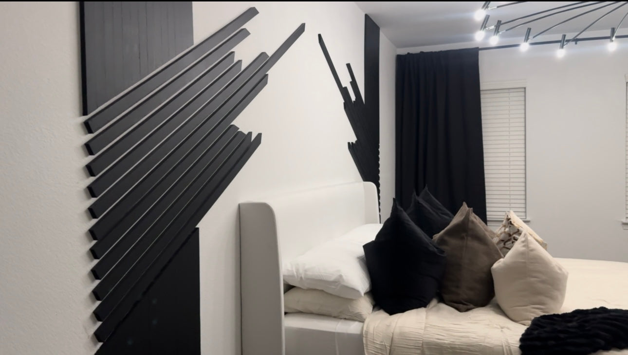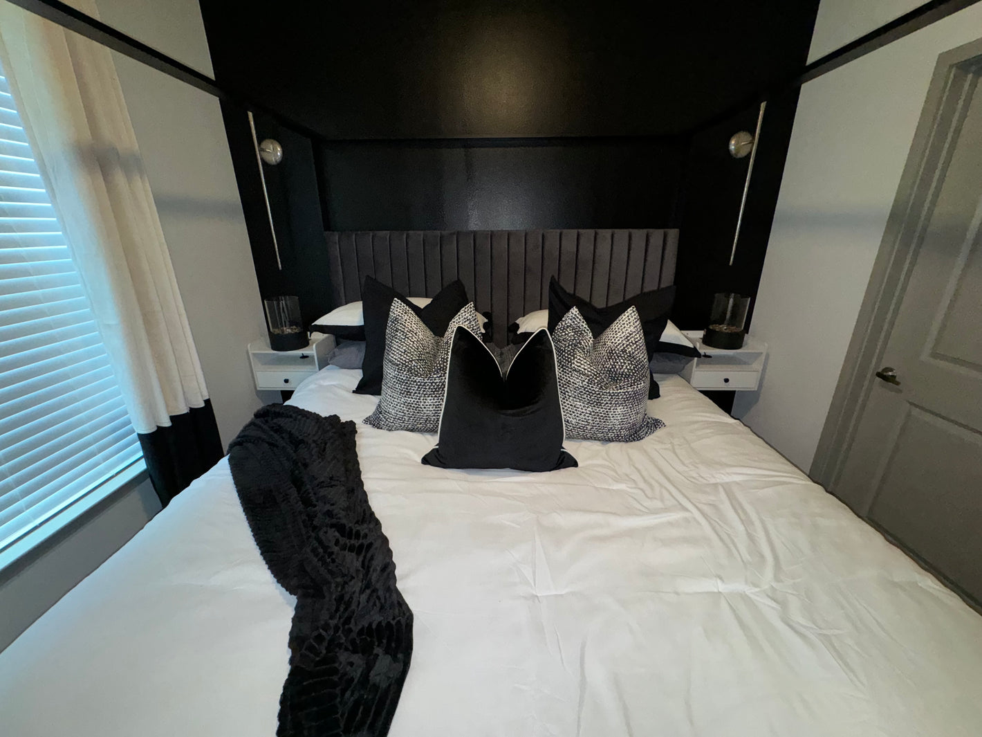 Where Is The Line?The approach taken for the black and white mellow-toned master bedroom was exactly what the client requested. In this case, the design showcased the power of simplicity, proving that a pop of color wasn't necessary.