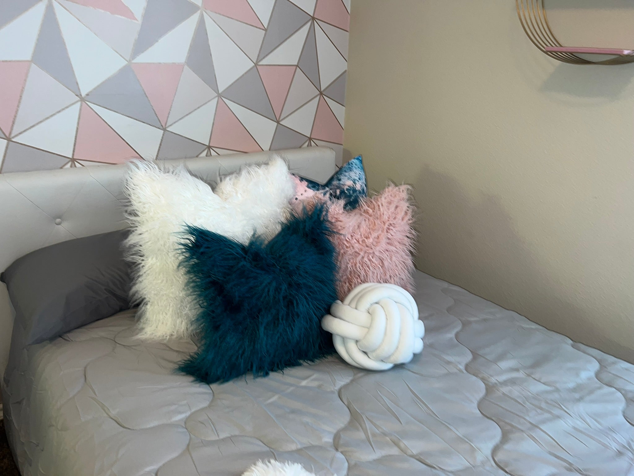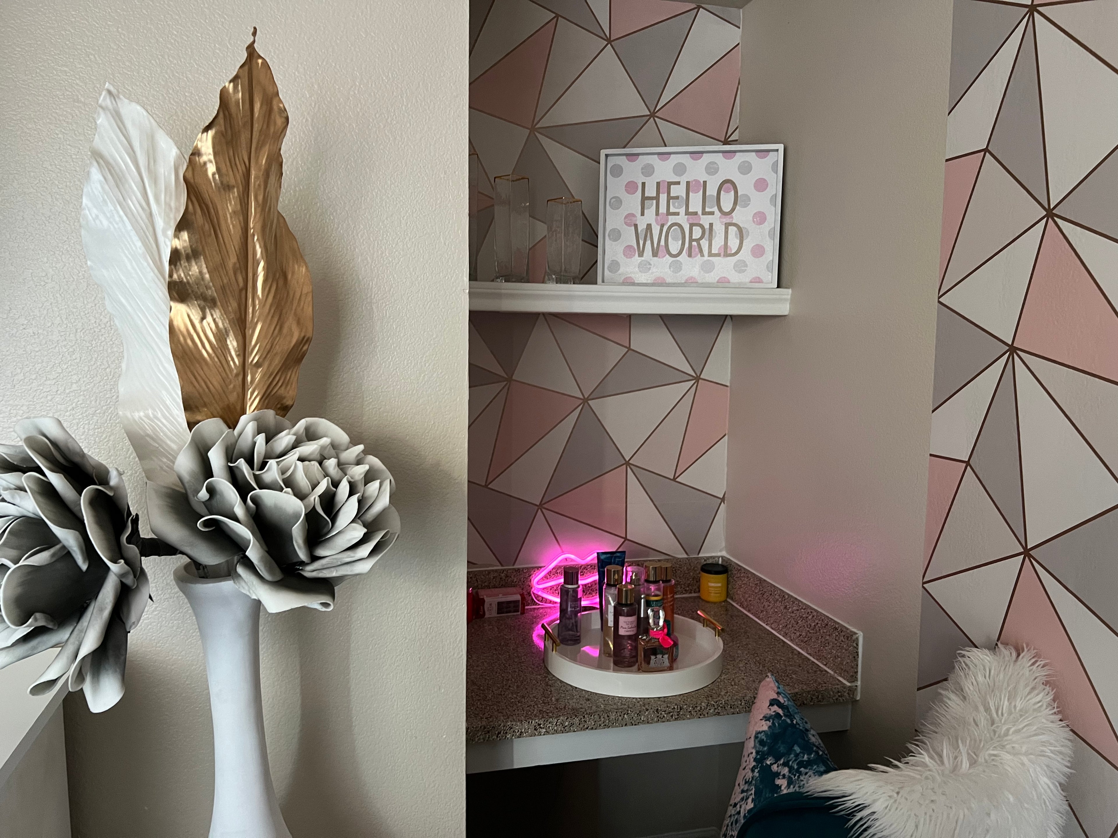 Through meticulous attention to detail, we brought depth and dimension to this project, employing color psychology to evoke specific emotions and enhance the overall ambiance. Whether it's invigorating hues for a lively workspace or soothing tones for a tranquil retreat, DM Aesthetics Interiors & Decor understands the transformative power of color in establishing the desired atmosphere. We believe that color is not just a visual aspect of design but a powerful tool that can evoke emotions, influence moods, and promote well-being. With our artistic approach and keen eye for color harmony, we created spaces that resonate with this client and left a lasting impression on all who entered this room.