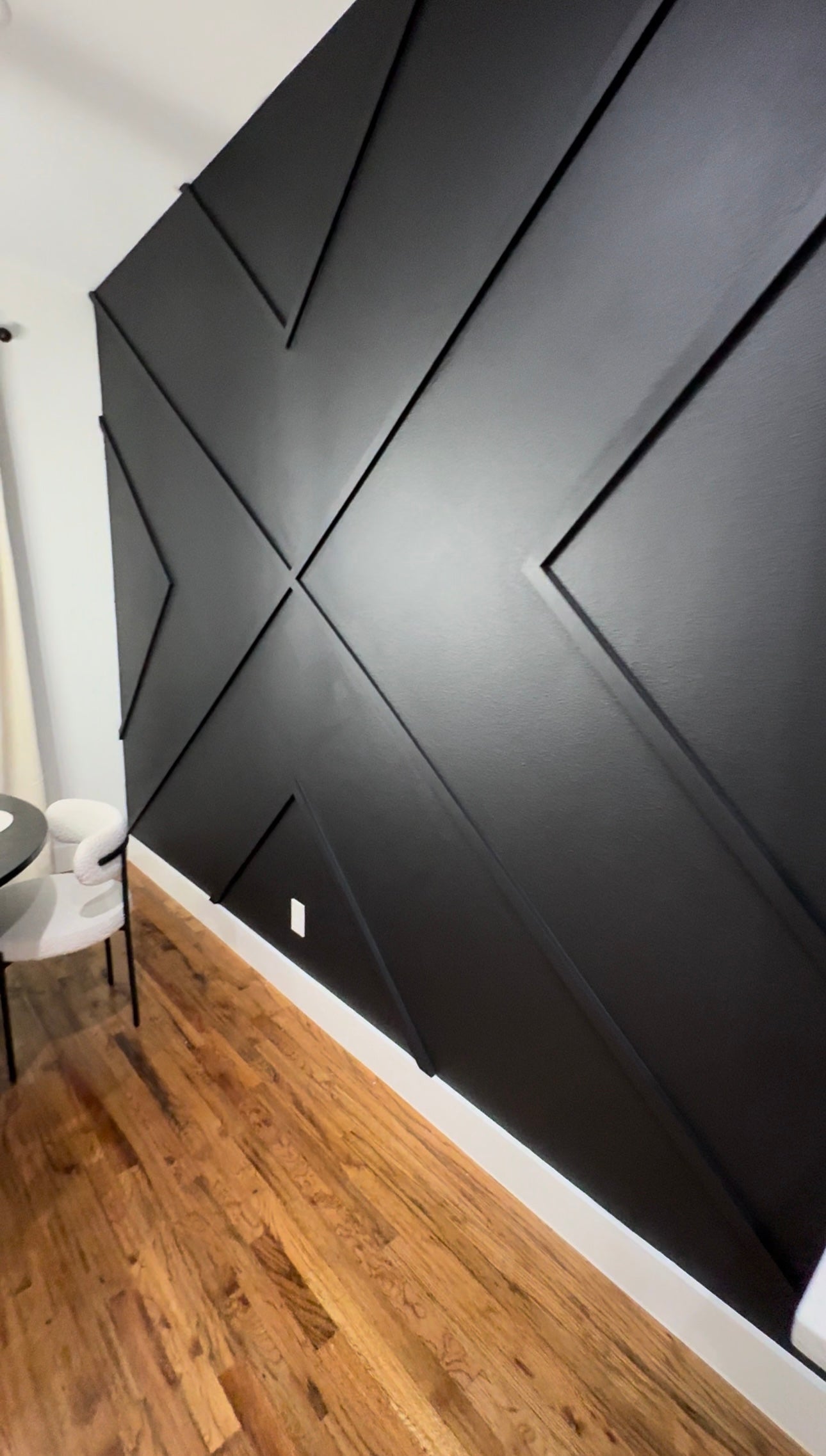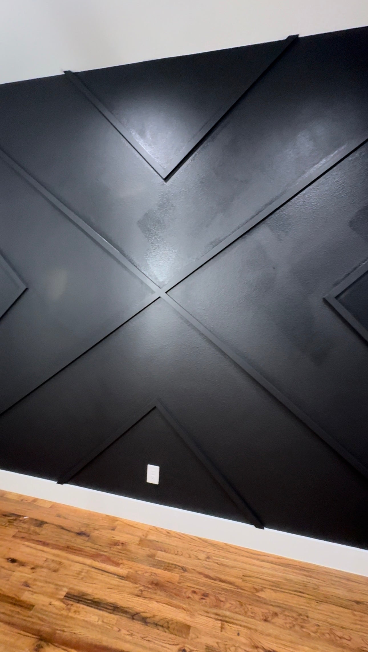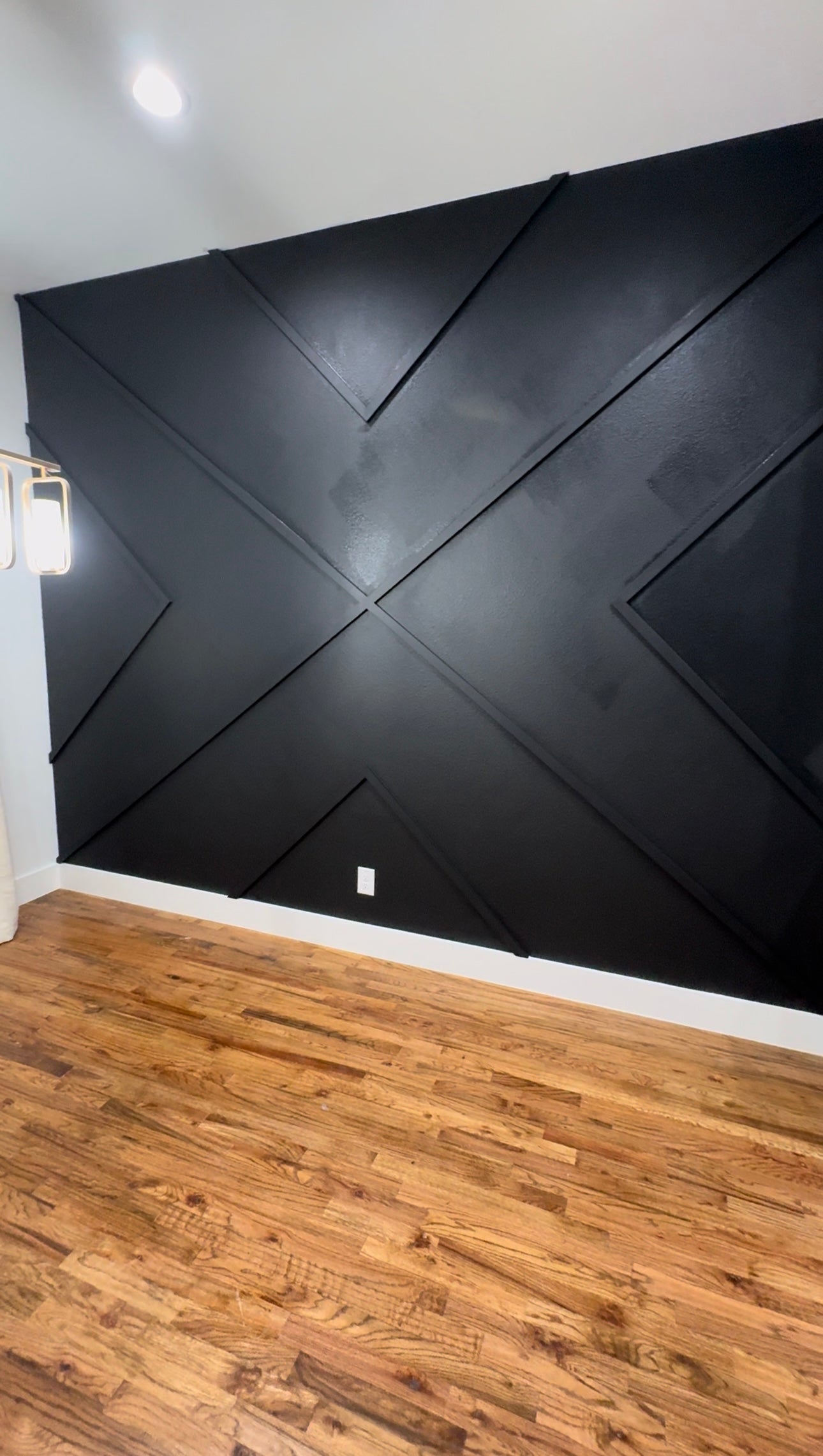 This accent wall demonstrates how something seemingly simple can become a powerful focal point in a room. The X-pattern, likely created using wooden trim or molding, adds depth and texture to an otherwise plain surface. The geometric design draws the eye and creates a sense of structure within the cozy nook setting.